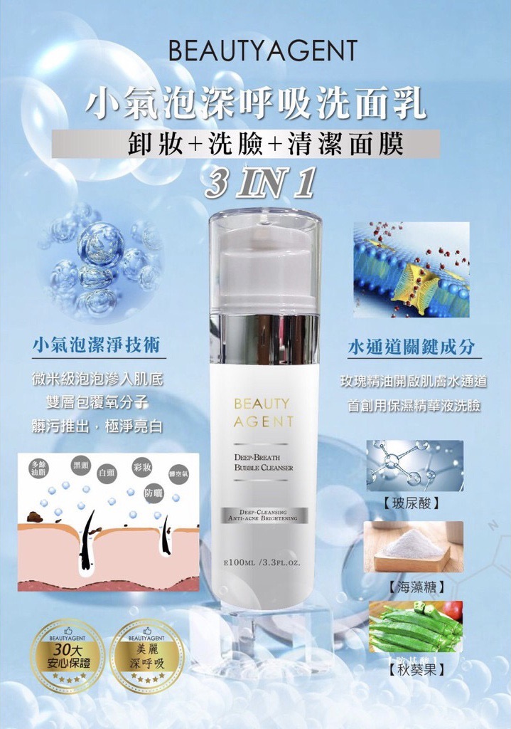 1.不加水,將小氣泡深呼吸洗面乳塗於臉上可當卸妝使用。